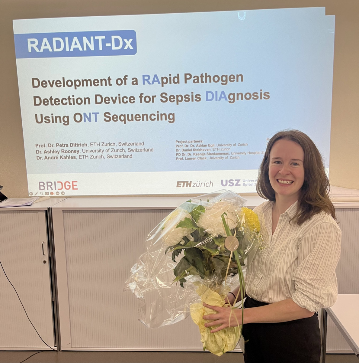 Dr. Ashley Rooney, together with Prof. Petra Dittrich and Dr. Andre Kahles (both from ETH Zurich), has successfully secured an SNSF Bridge Discovery Grant with a substantial funding contribution. This will allow this interdisciplinary team to develop a novel detection system for sepsis that combines microfluidics with rapid sequencing. The title of the project is "Development of a Rapid Pathogen Detection Device for Sepsis Diagnosis Using ONT Sequencing (RADIANT-Dx)".