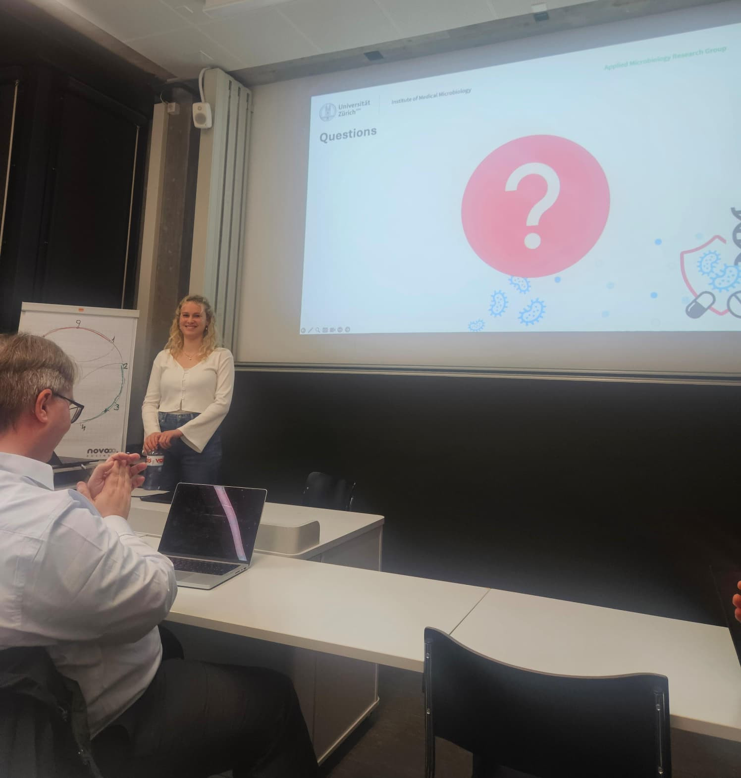 Many congratulations to Vera Bregy on successfully defending her master’s thesis today titled "Investigating the impact of microbial interactions on the expression levels of Antimicrobial Resistance genes"!!!🎉